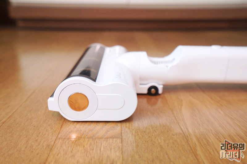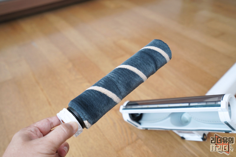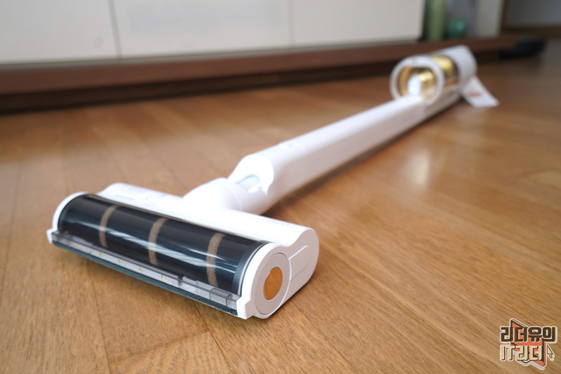 진공 롤 헤드를 장착한 모습입니다. 부드러운 소재의 헤드로 바닥 손상을 방지하고 강하게 돌아가는 회전력으로 최적의 청소를 할 수 있게 해줍니다. 그리고 머리카락이나 털이 엉키지 않는 것도 장점입니다.