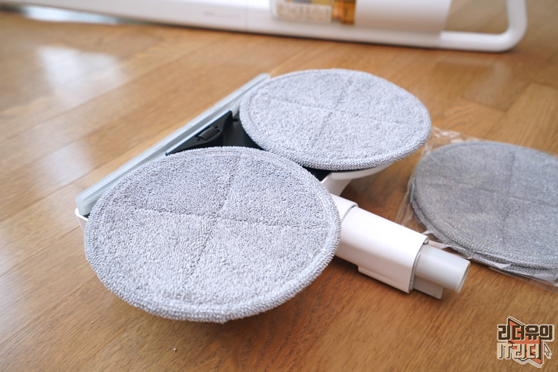 물걸레 패드 부착판과 진공 물걸레 헤드 입니다. 미로 더제로 s9 진공물걸레 무선청소기의 특화된 매력이라 할 수 있는 부분인데요.