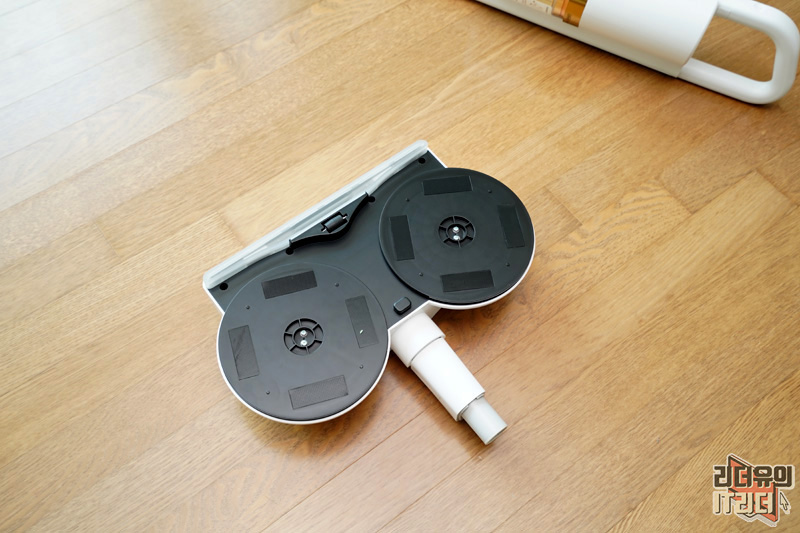 진공 물걸레 헤드 아래쪽을 보면 커다란 회전판을 볼 수 있습니다. 보통의 물걸레 청소기 보다 큰 사이즈를 느낄 수 있습니다