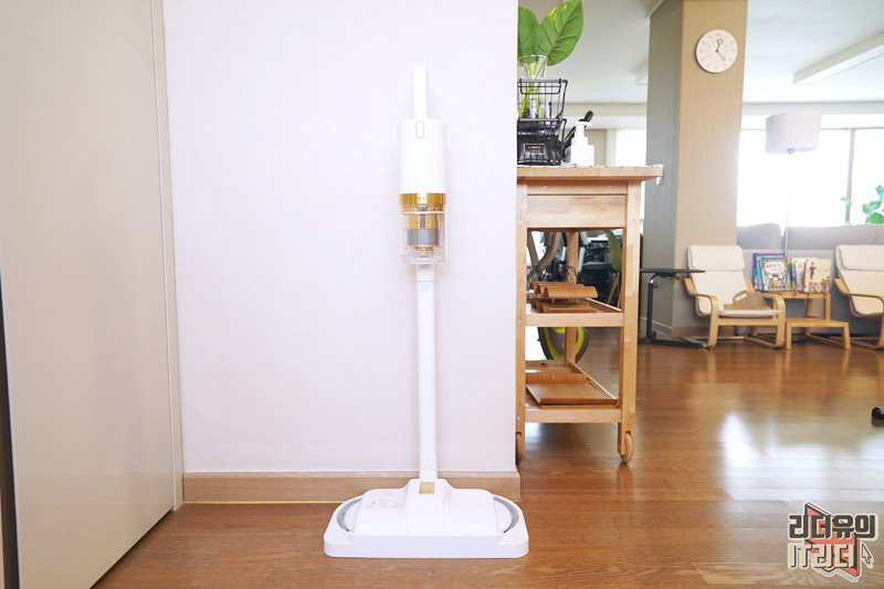 그리고 진공 롤 헤드 장착시에는 셀프 스탠딩 기능을 지원하지 않아서 거치를 하려면 무조건 물걸레 헤드로 변경해서 해야 합니다. 거치대가 따로 있는 것이 아니기 때문에 이 부분도 살짝 불편한 부분이라 할 수 있습니다.