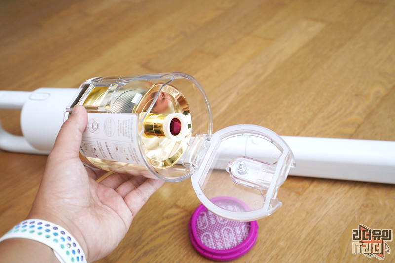 먼지통을 분리한 부분도 깔끔합니다. 골드의 화려함이 인상적이죠?
