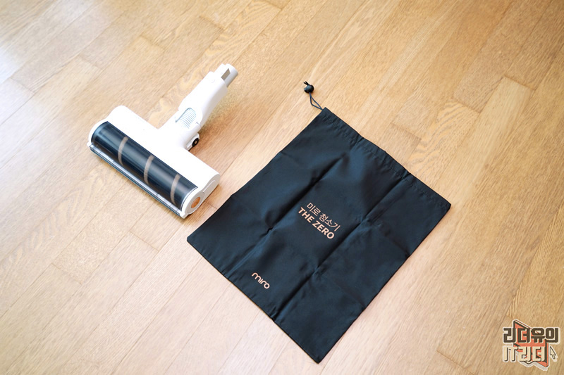 그리고 아무래도 물걸레 청소를 많이 하니 진공 롤 헤드 보관을 이렇게 파우치에 넣어서 할 수 있게 배려하고 있습니다. 먼지가 쌓이지 않으니까 좋습니다. 진공 청소기를 메인으로 하는 청소기는 아니니 참고를 해두세요.