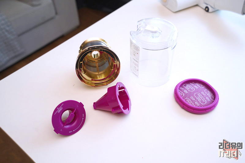먼지통을 분리한 부분도 깔끔합니다. 골드의 화려함이 인상적이죠?