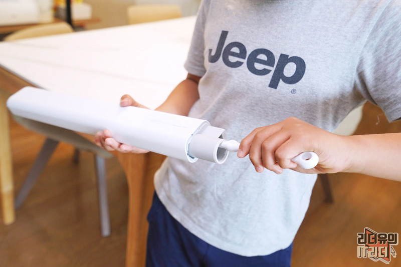 그립감 좋고 무게 배분도 좋아서 손목 부담 없이 청소를 편하게 할 수 있습니다. 인체 공학적으로 80도 손목 그립이 가능한 디자인입니다. 아이들도 사용할 수 있을 정도의 핸들링 입니다.