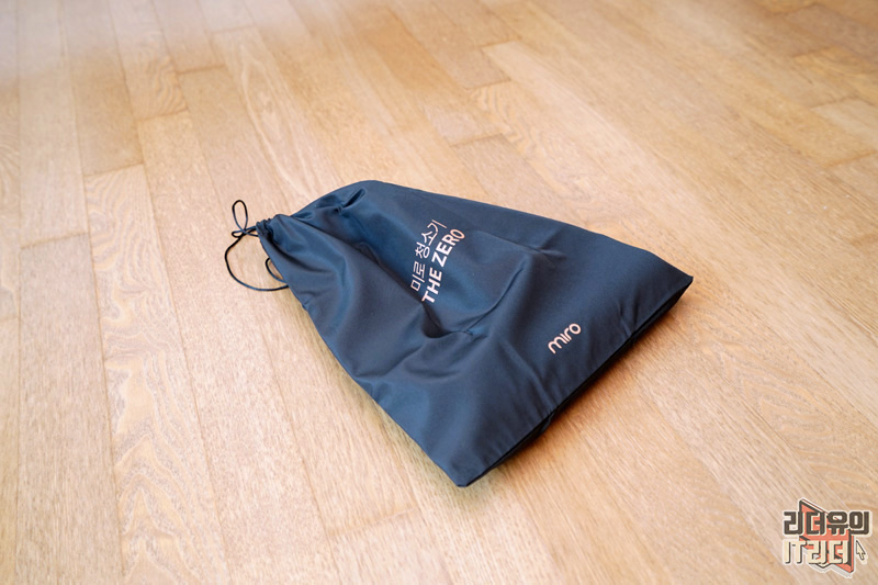 그리고 아무래도 물걸레 청소를 많이 하니 진공 롤 헤드 보관을 이렇게 파우치에 넣어서 할 수 있게 배려하고 있습니다. 먼지가 쌓이지 않으니까 좋습니다. 진공 청소기를 메인으로 하는 청소기는 아니니 참고를 해두세요.