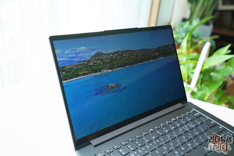 노트북에서 무엇보다 중요한 것이 디스플레이 인데요. 14인치 IPS 디스플레이로 선명한 색감을 볼 수 있습니다. 저렴한 노트북과 확실한 차이를 느낄 수 있는 부분입니다. 양 사이드를 보면 배젤 두께가 슬림해서 꽉찬 디스플레이 매력을 느낄 수 있고