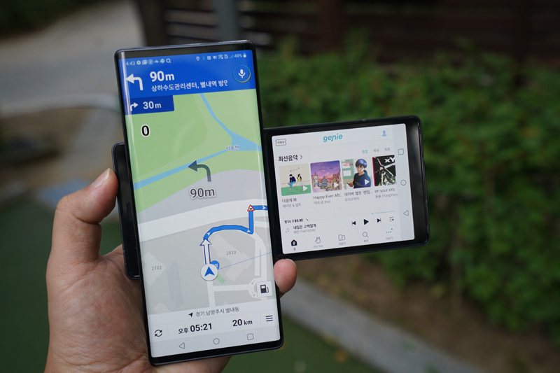 LG 윙은 두 개의 스크린을 동시에 컨트롤 할 수 있어 빠른 사용성이 매력적입니다. 그리고 한손 컨트롤도 가능하기 때문에 안정적인 사용도 매력적입니다.