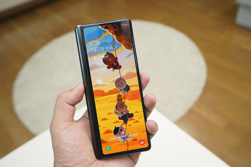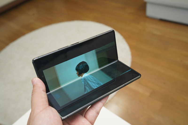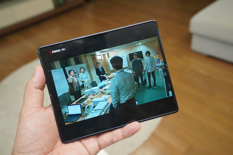삼성 갤럭시Z 폴드2 디스플레이는 펼쳤을때 7.6형 디스플레이로 대화면의 매력을 느낄 수 있습니다. 이점이 갤럭시Z 폴드2의 최대 강점인데요. 다만 화면 비율이 영상을 보는 화면비가 아니기 때문에 대화면을 다 살리지는 못합니다. 가로 영상의 경우 위아래 레터박스가 많이 남습니다. 그리고 펀치홀 디스플레이라는 점도 LG윙에 비하면 아쉬운 부분이라 할 수 있습니다. 화면에 주름이 잡히는 것도 예민한 분들한테는 약점이라 할 수 있습니다.