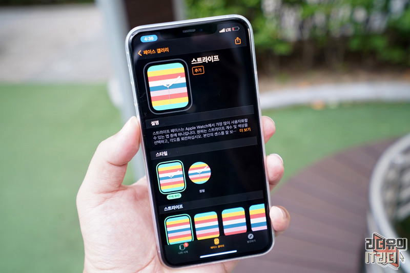 이렇게 개성있는 스트라이프 워치페이스로 애플워치의 디자인 감각을 뽐낼 수 있습니다. 자신의 패션 코드와 맞추면 더 예쁘게 사용할 수 있을 것 같습니다.