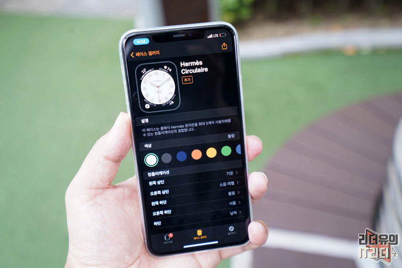 애플워치에 적용한 모습입니다. 워치페이스에 에르메스 파리라고 써 있는 것으로 차별화를 느낄 수 있습니다.