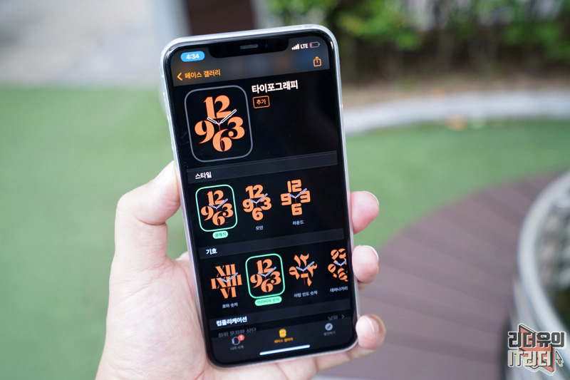 애플워치 타이포그래피를 적용한 모습입니다. 감각적인 시계 화면이 인상적입니다.