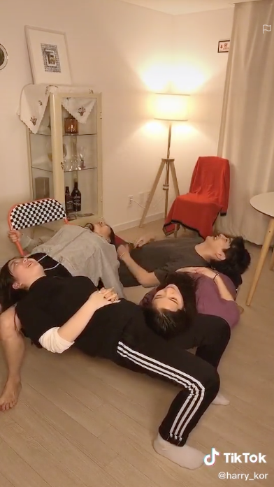 그리고 틱톡 단체놀이로 서로에게 의지해야만 완성할 수 있는 컨텐츠도 있습니다. 이런 기이한 자세 만들기 많이 보셨죠? 별거 아닌거 같지만 만들면서 재미있고 함께 짧은 영상으로 추억을 남길 수 있어 웃을 수 있는 컨텐츠입니다.