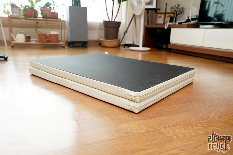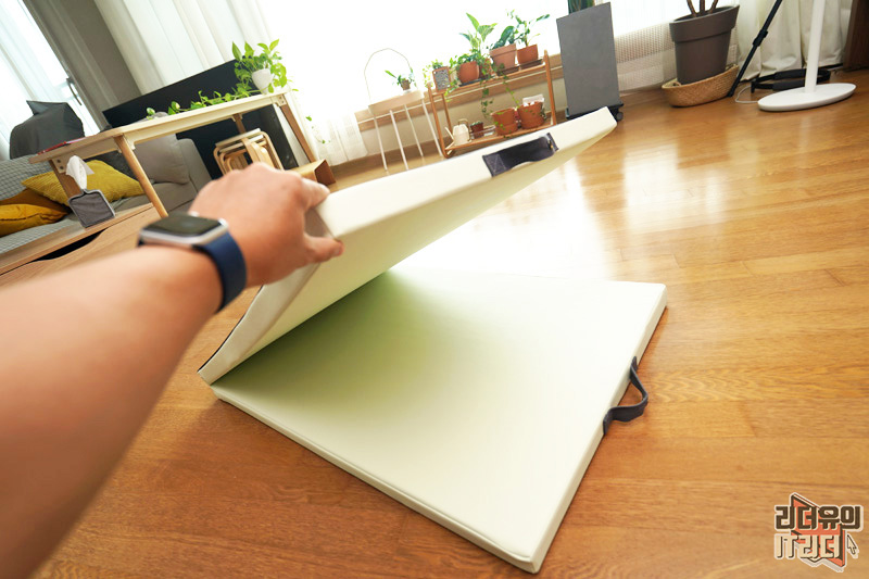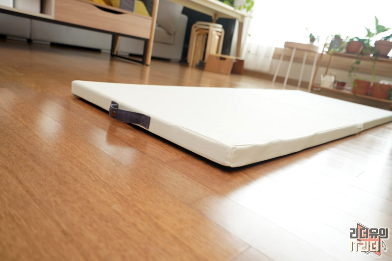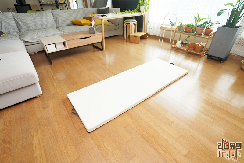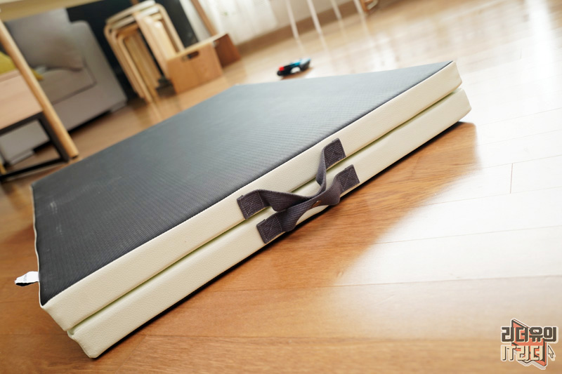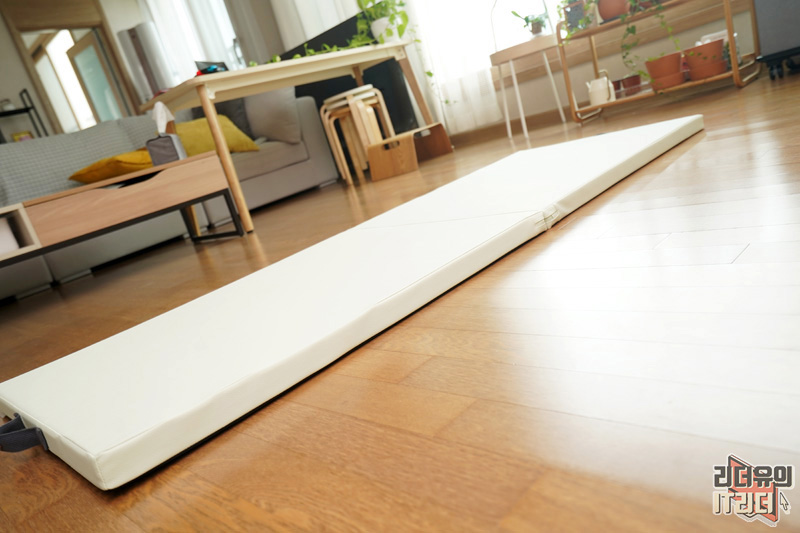 매트는 이렇게 해서 넘겨주면 깔끔하게 펼쳐집니다. 어떤 공간이든 가볍게 펼칠 수 있고 접어서 보관하고 각이 딱 잡힌 디자인이라 사용하기 좋습니다.