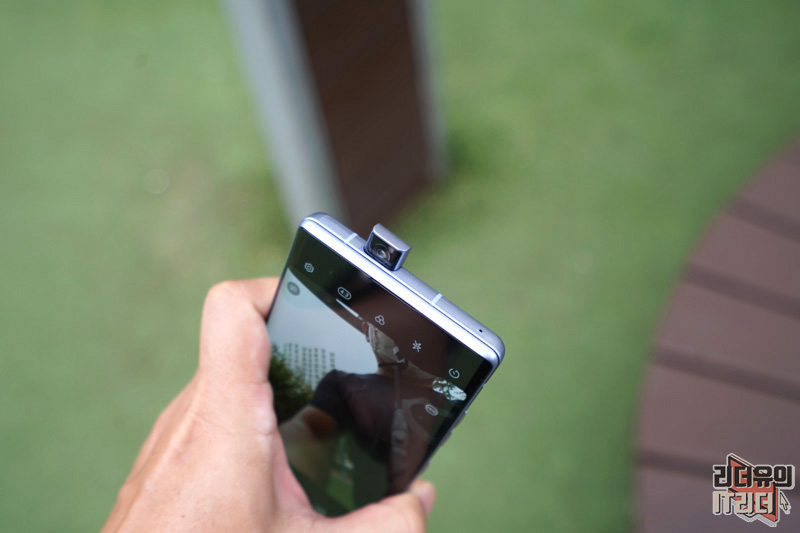 LG 윙 오로라 그레이 팝업 카메라도 테두리 프레임과 색상을 같이해 일체감 있는 디자인을 느낄 수 있습니다.