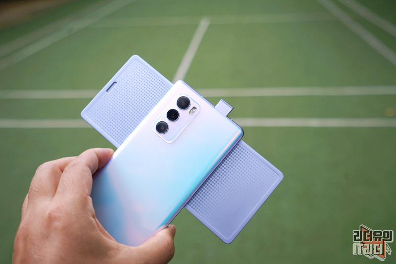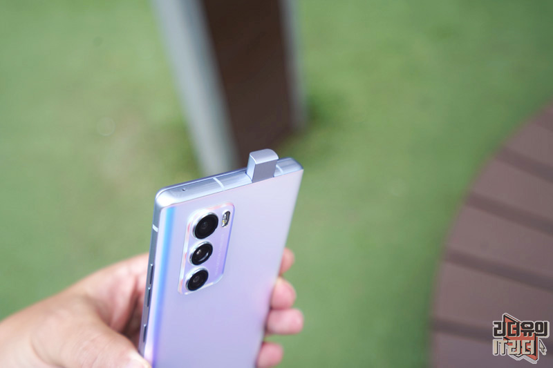 LG 윙 팝업 카메라도 일루전 스카이에 맞게 보라빛이 도는 컬러를 적용해 섬세한 디자인 매력을 살렸습니다.