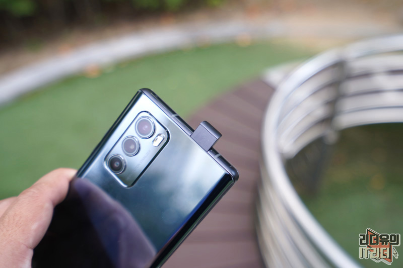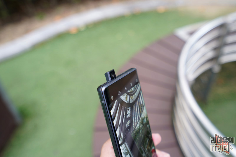 LG 윙 오로라 그레이 팝업 카메라도 테두리 프레임과 색상을 같이해 일체감 있는 디자인을 느낄 수 있습니다.
