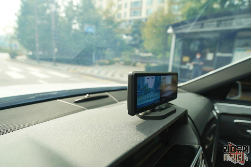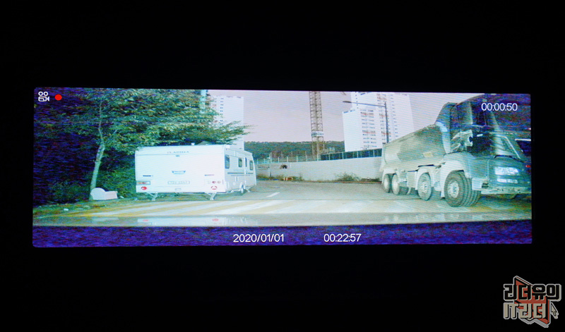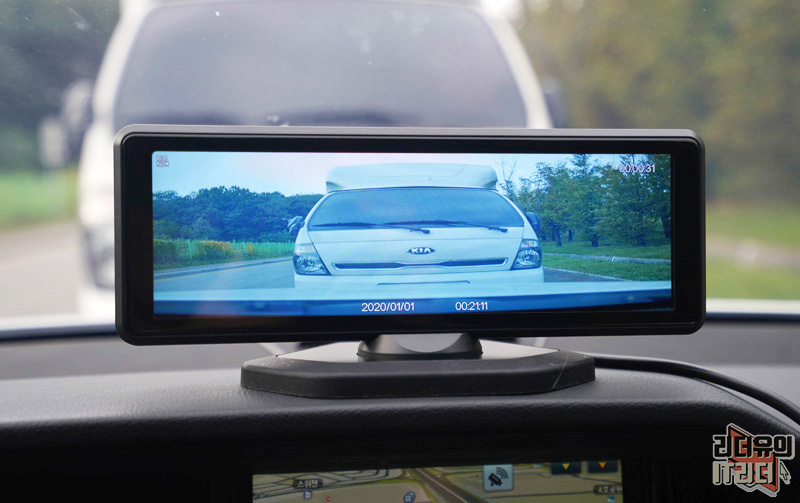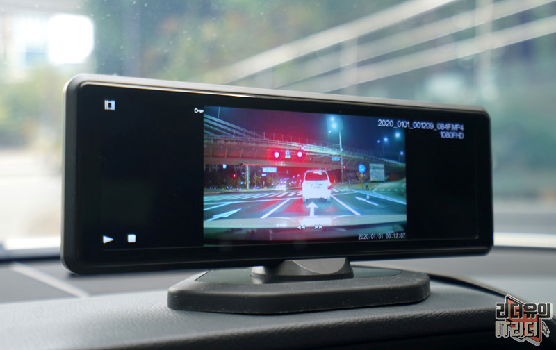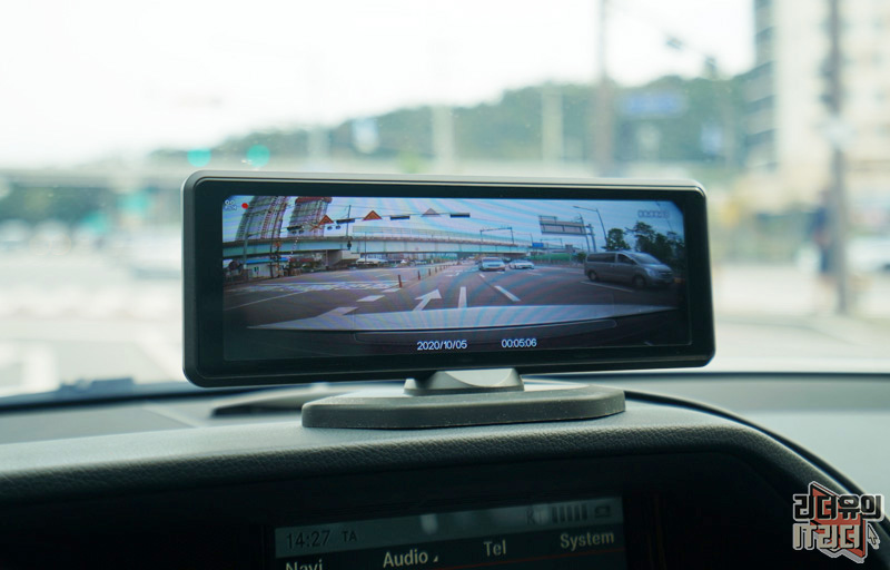 그리고 만약 사고가 났을때 영상을 확인하는 것도 화면이 커서 쉽게 확인이 가능합니다. 보통의 블랙박스는 3인치~4인치 정도인데 이 제품은 대화면을 활용해서 보여주니 즉각적인 확인이 가능해서 좋습니다. 그리고 위와 같이 영상이 가로로 길게 보이는 형태가 아니라 일반적인 블랙박스처럼 찍힌다고 보시면 됩니다.