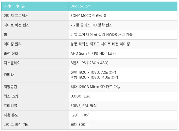DuoVox 듀오박스 나이트비전 스펙 및 특징