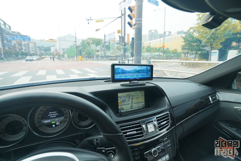 상황에 따라 운전대 위에 올려두고 사용도 가능합니다. 차선이 안보이고 길이 안 보이는 경우라면 이렇게 화면을 보고 운전하는 것도 가능합니다.