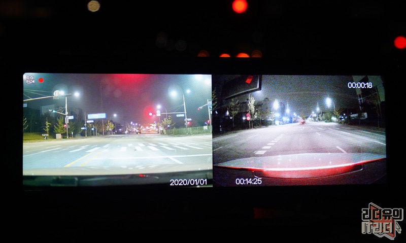 완전히 빛이 없는 곳에 갔을때의 전후방 카메라 화면입니다. 전방은 놀랍게도 대낮이라 할 정도로 놀라운 화면을 보여주고 있습니다.