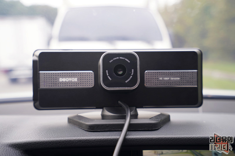 DuoVox 듀오박스 전면 모습입니다. 가운데 FULL HD 1080p 카메라가 있습니다. 전방 카메라의 경우 후방 카메라와 달리 7G 풀 글래스 HD 광학 렌즈를 사용했습니다. 그리고 업그레이드 된 SONY MCCD 감광성 칩을 사용했고 능동 적외선 저조도 나이트 비전 이미징 기술로 칠흑 같은 어둠속에서도 사물을 정확하게 파악할 수 있게 지원합니다. 영상을 보시면 쉽게 이해가 되실 것입니다.