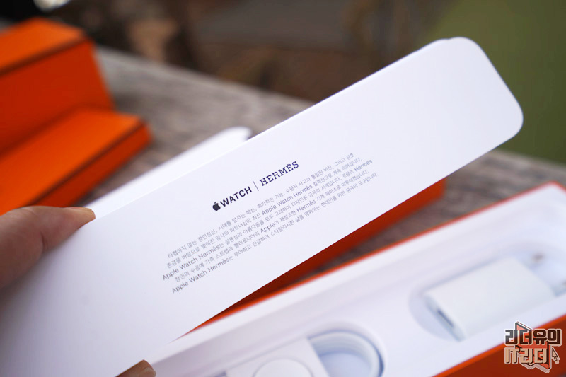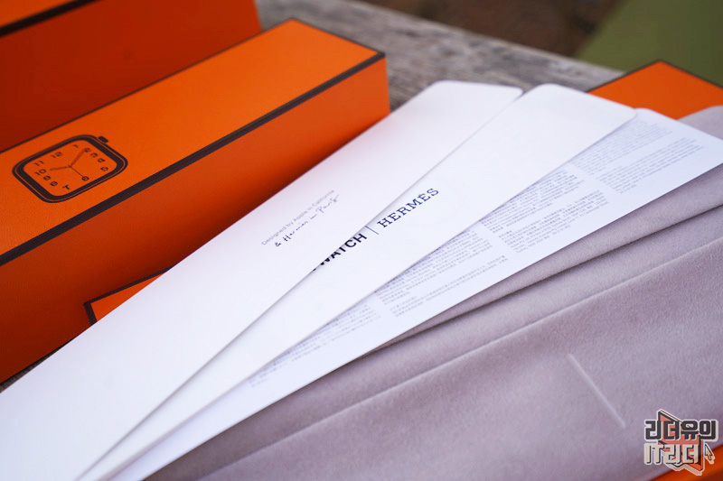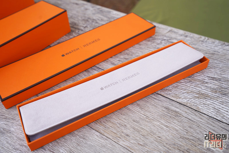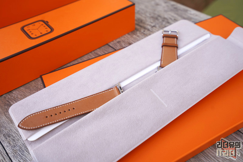 애플워치 에르메스 가죽 밴드가 들어 있는 모습입니다. 실제 에르메스 가죽 제품을 만났을때의 포장을 그대로 느낄 수 있습니다.