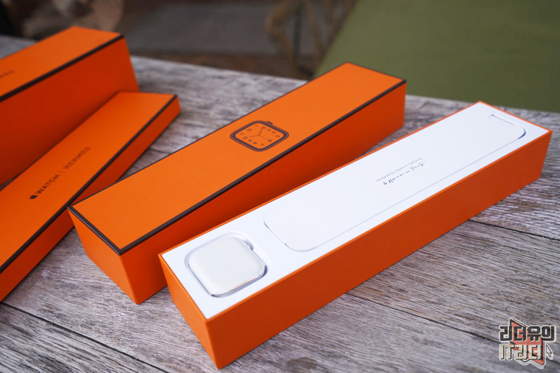 애플워치 시리즈6 에르메스 패키지 입니다. 실제 에르메스 제품의 포장으로 되어 있고 프리미엄 이미지를 담고 있습니다. 참고로 전작 애플워치 시리즈5 에르메스와 패키지 디자인은 달라지지 않았습니다.