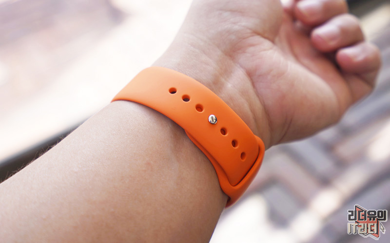 손목에 착용했을때도 괜찮습니다. 땀을 많이 흘릴 상황에서는 이 밴드로 편하게 사용하시면 됩니다.