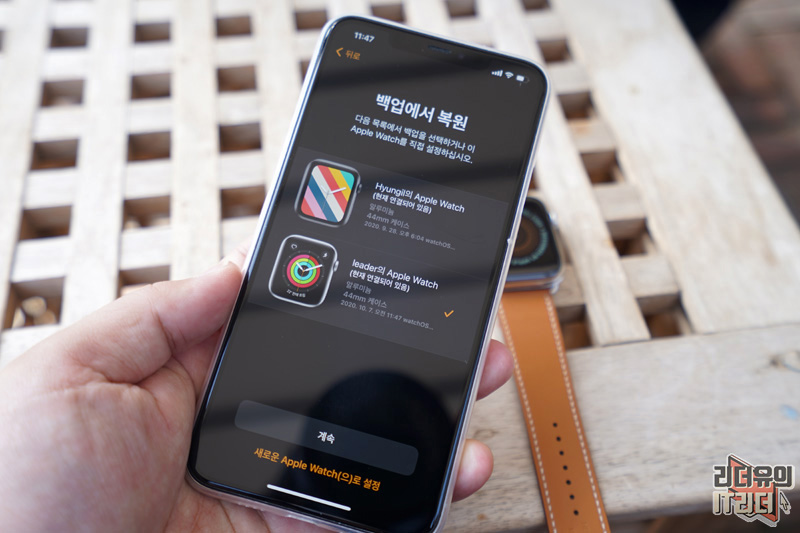 저는 여러가지 애플워치를 사용했기 때문에 어디서 복원할 것인지 선택할 수 있게 나왔습니다. 해당 워치를 선택하면 그 데이터가 그대로 옮겨 간다고 보시면 됩니다. 워치페이스까지!