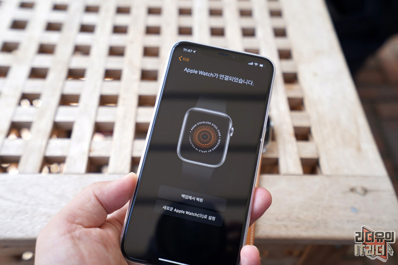 애플워치 연결이 완료되었습니다. 이제 기존에 사용하던 애플워치가 있으면 백업에서 복원을 선택하면 됩니다. 기존의 데이터를 이어서 볼 수 있습니다.