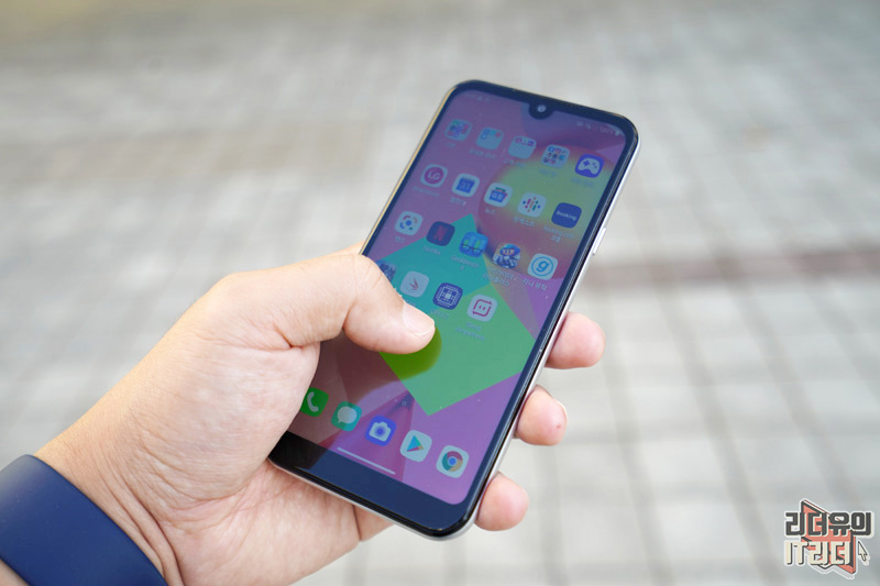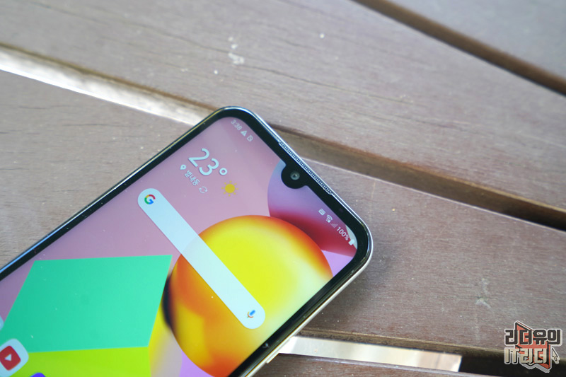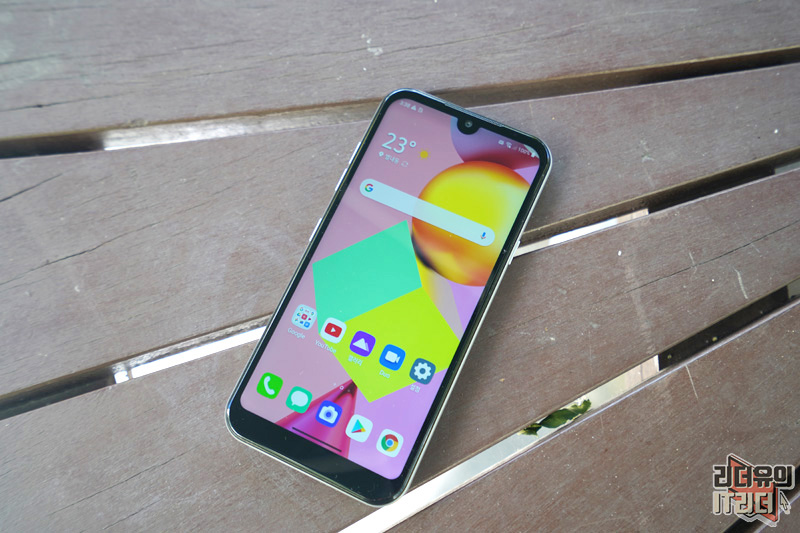 LG Q31은 5.7형 U노치 디스플레이를 가지고 있습니다. 상단, 좌, 우는 슬림한 배젤을 가지고 있고 하단 배젤은 두껍게 처리되어 있습니다. 이 부분이 살짝 아쉬운 부분이긴 한데요. 그래도 예전의 스마트폰 처럼 상단 배젤이 넓지 않아서 최신의 스마트폰 디자인을 담았습니다.
