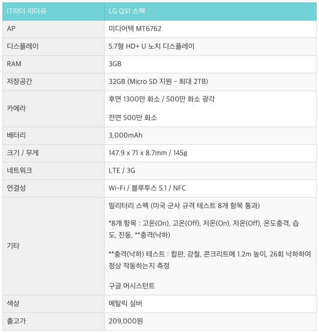 LG Q31 스펙, 가격