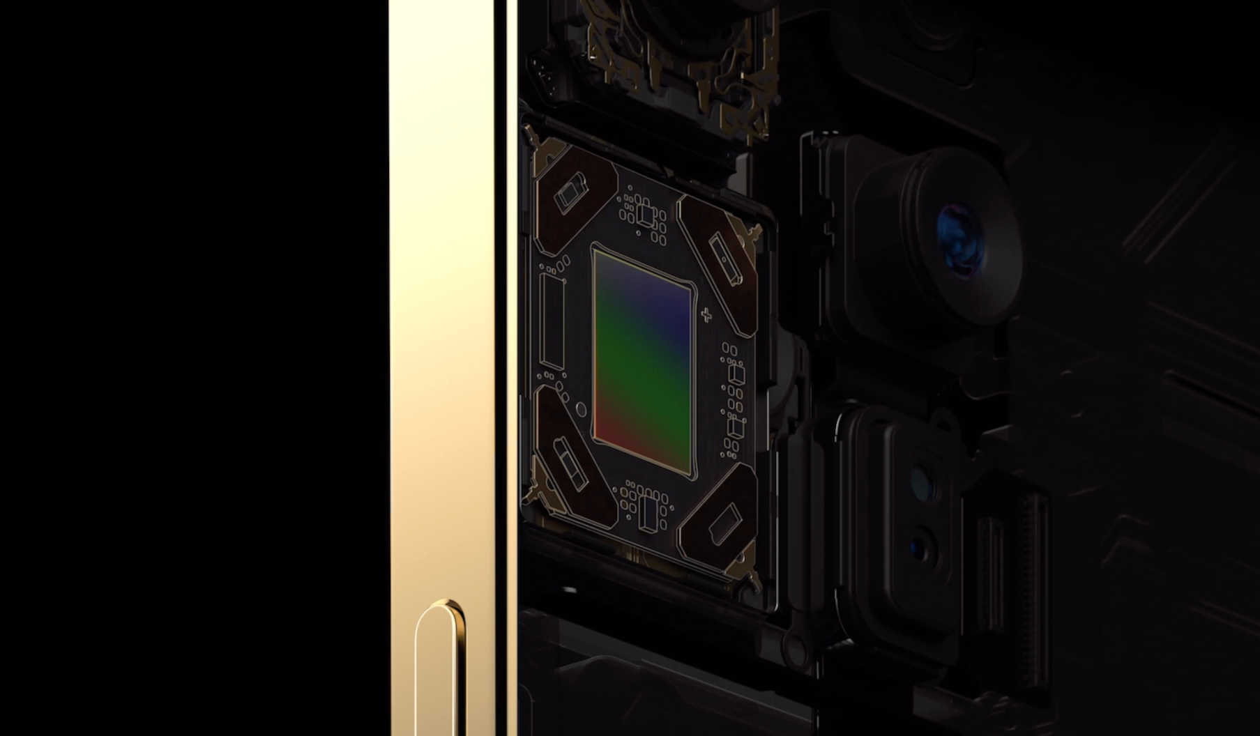 아이폰12 프로, 아이폰12 프로 맥스는 트리플 카메라로 울트라와이드, 와이드, 망원 카메라를 탑재하고 있습니다. 울트라 와이드는 F/2.4, 와이드는 F/1.6으로 아이폰12 카메라와 같습니다. 다른점은 망원 카메라가 더 있는 것으로 F/2.0 조리개를 가지고 있습니다. 그리고 초당 5000번의 흔들림 보정 작업을 처리하는 새로운 OIS와