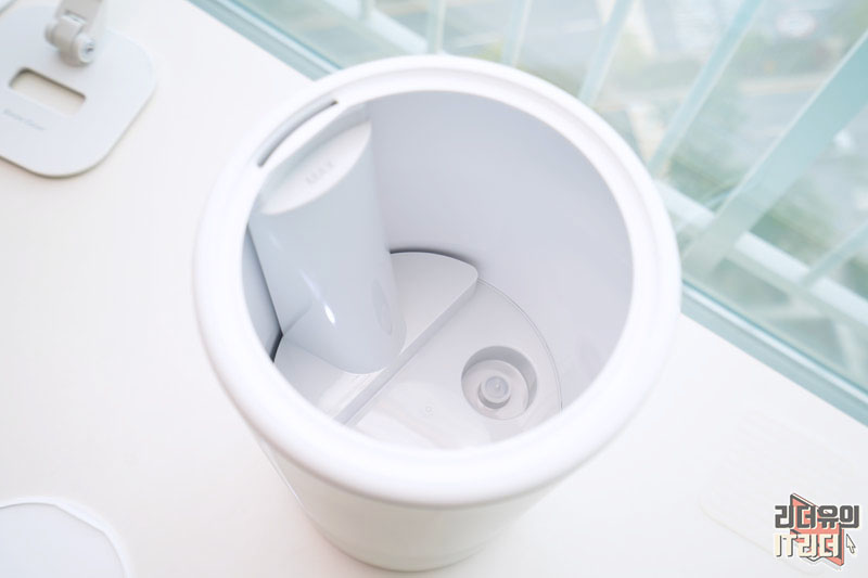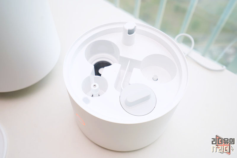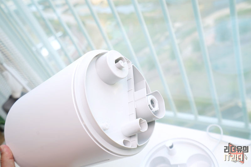 안쪽 깊숙하게 물탱크가 있습니다. 4.5L 용량이라 여유로운 사용을 할 수 있어 좋습니다. 4.5L 가늠이 되시나요? 1리터 패트병이 4개하고도 반이 들어갑니다. 저용량 가습기들이 예쁘긴 하지만 물을 자주 갈아줘야 되는 번거로움이 있는데 대용량 가습기는 그런 불편함이 없어서 좋습니다. 물을 채우면 약 12~15시간 동안 사용할 수 있습니다.