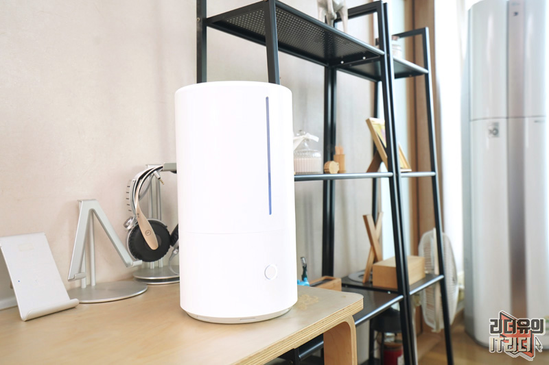 옆에서 보면 기다란 기둥 모양을 하고 있습니다. 디자인은 샤오미 제품답게 심플하고 깔끔한 매력을 가지고 있습니다. 화이트 색상이라 화사합니다. 사이즈는 좀 큰 편인데요. 물탱크 용량이 무려 4.5L나 됩니다. 물을 자주 보충하지 않고도 여유롭게 사용할 수 있는 대용량 가습기 입니다.