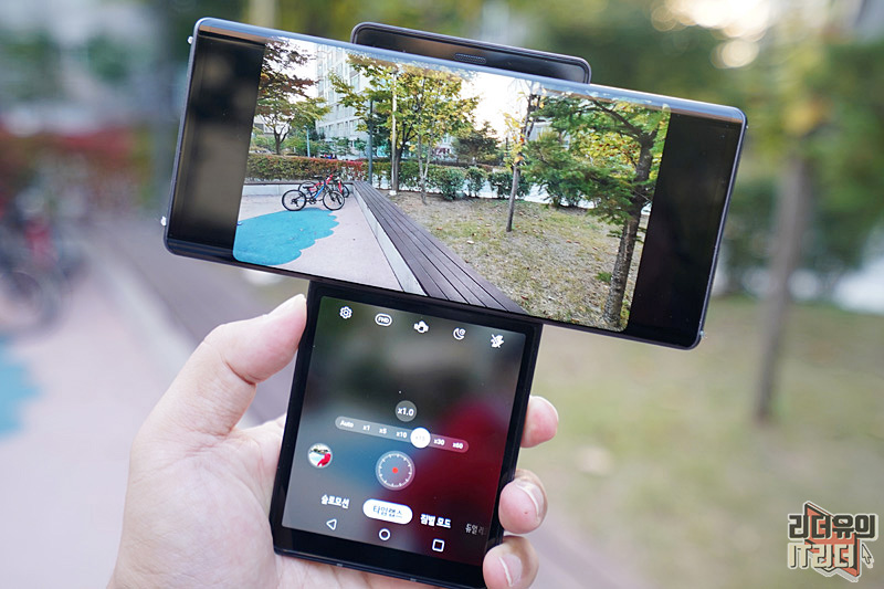 LG 윙은 전후면을 동시 촬영할 수 있는 듀얼 레코딩 기능을 기본 지원합니다. 인터뷰 촬영, VLOG 등에서 다양한 활용할 수 있는 기능인데요. 대상을 찍었다가 자신 찍었다가 이렇게 카메라 모드를 변경하거나 아니면 포기해야 하는 상황이 많았는데  LG 윙은 그러지 않아도 됩니다.