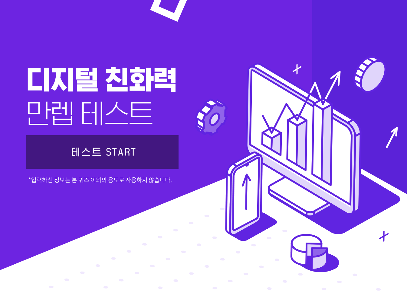 디지털 친화력 만렙 테스트는 몇가지의 질문을 통해 디지털을 어떻게 활용하고 있는지 자신을 돌아 볼 수 있게 해줍니다.