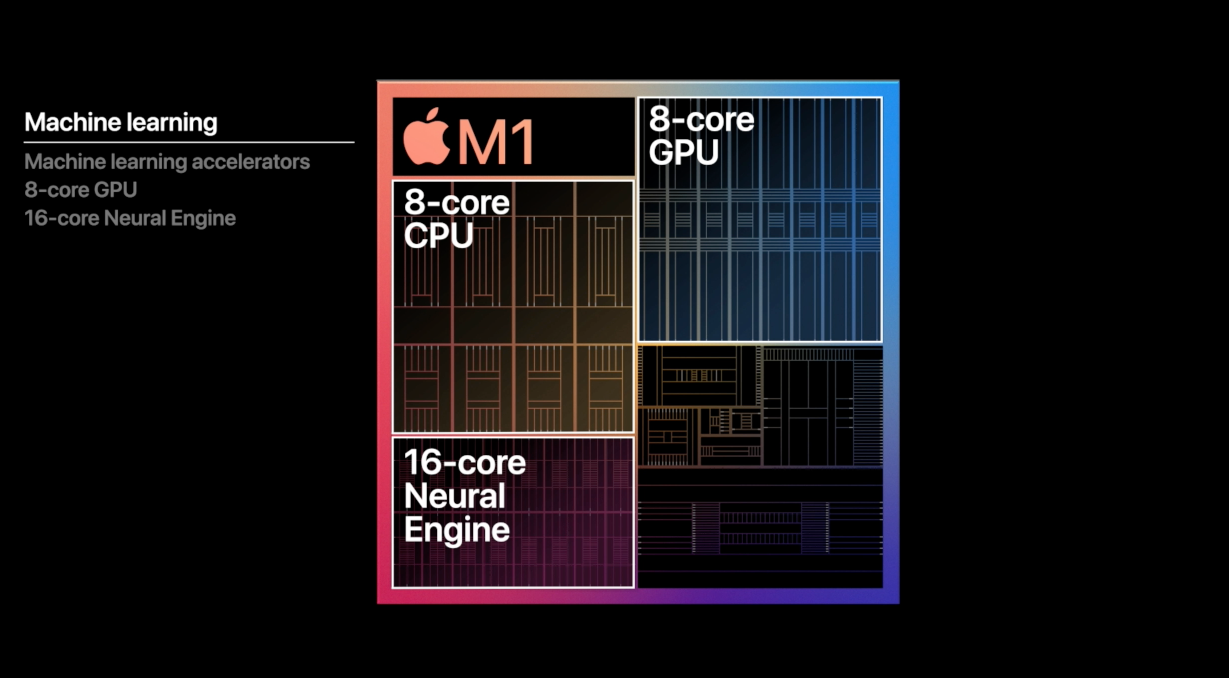 그리고 애플 M1은 하나의 칩 속에 모든것을 담았습니다. Mac은 본래 CPU, I/O, 보안 등을 위해 다수의 칩이 사용되었습니다. 애플 M1은 이 모든것을 하나로 합쳤습니다. 그래서 성능 및 전력 효율이 증대되었고 내부 단일 풀에서 구동되니 데이터를 복사할 필요 없이 성능 및 효율이 좋아졌습니다.