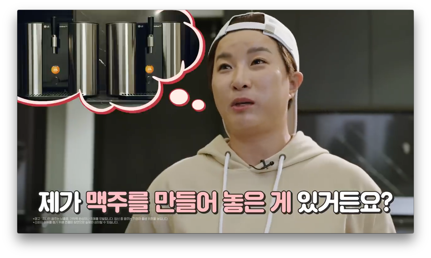 그리고 맥주는 LG 홈브루로 만든 다는 것을 암시하면서 이렇게 LG의 다양한 가전들을 흡입력있게 보여줬습니다.