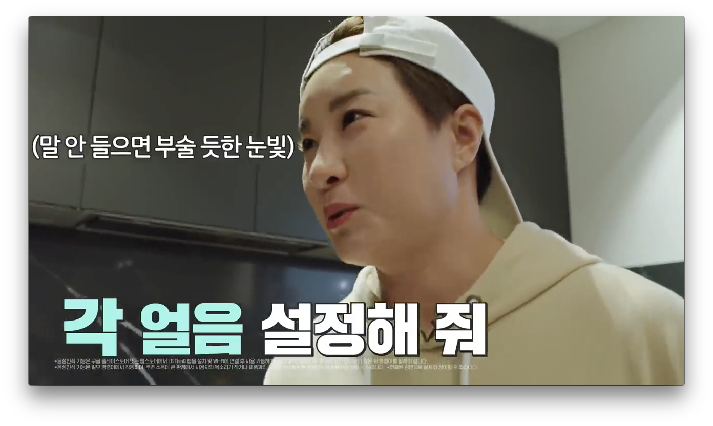 그리고 LG전자 가전들이 어떻게 사용되는지 킬포인트를 정확하게 잡아서 보여주고 있습니다. 사고 싶게 잘 만든 영상입니다.