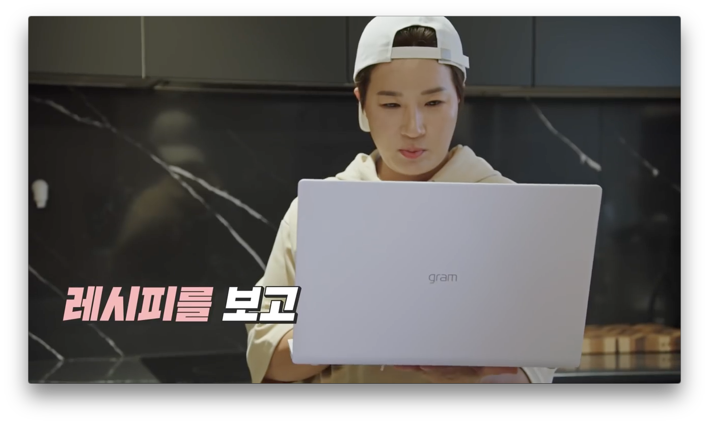 LG 그램으로 레시피를 보는 모습입니다. 사이즈가 커 보이는 게 그램 17인치 같습니다.