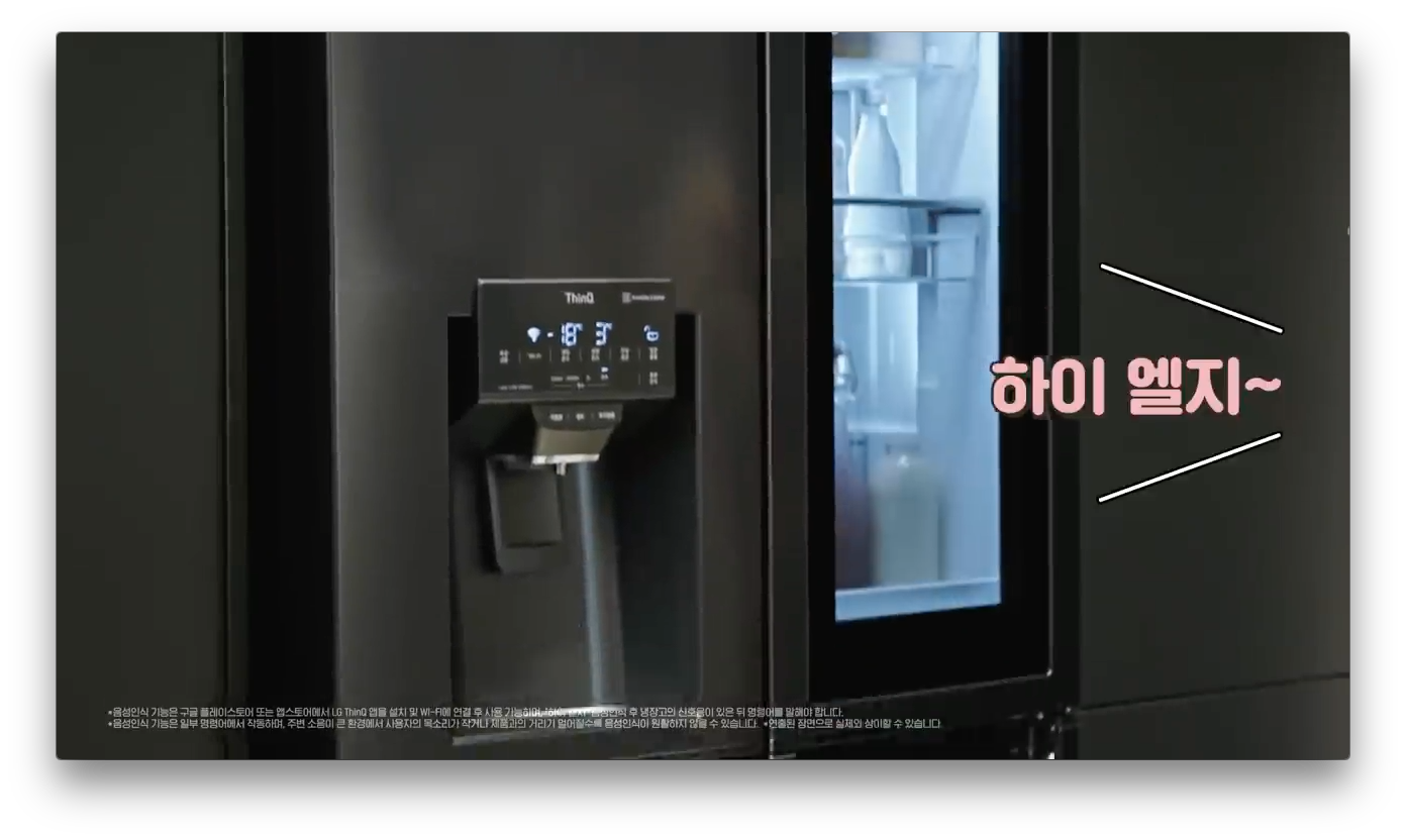 그리고 음성으로 컨트롤 되는 기능도 보여줍니다. 물을 정량으로 받을 수 있고 얼음도 선택할 수 있어 이건 좀 대박입니다.