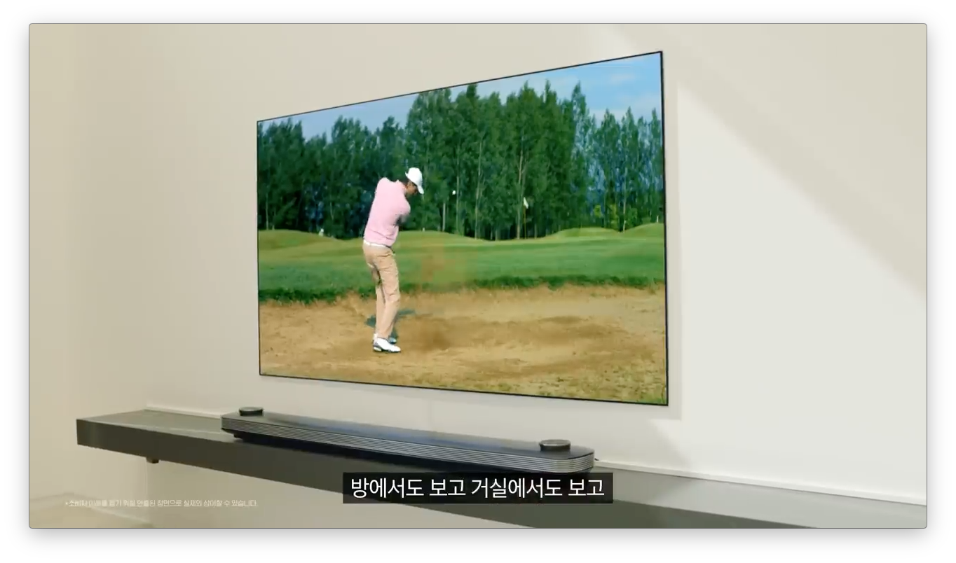 박세리 선수는 집에 있을 때 TV를 많이 본다고 합니다. 벽에 착 달라붙어 있는 이것은!! LG 시그니처 올레드 W 입니다. 월페이퍼 디자인으로 벽과 하나가 되는 디자인을 볼 수 있습니다. 정말 놀라운 TV 입니다.