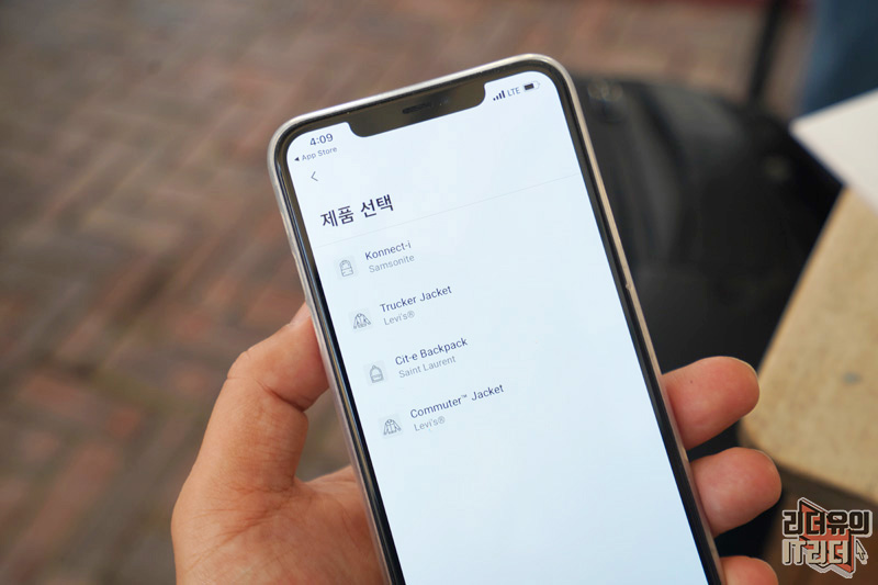 제품을 선택할 수 있게 나옵니다. 자카드™ by 구글 기술이 다양한 제품에 적용이 된 것을 알 수 있습니다. 쌤소나이트는 커넥트아이를 선택하시면 됩니다.