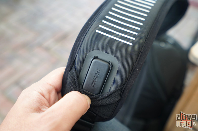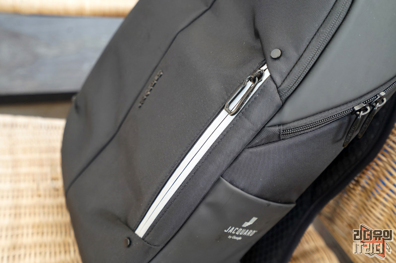 어깨 패드에는 자카드™ by 구글 표시가 음각으로 새겨져 있습니다.