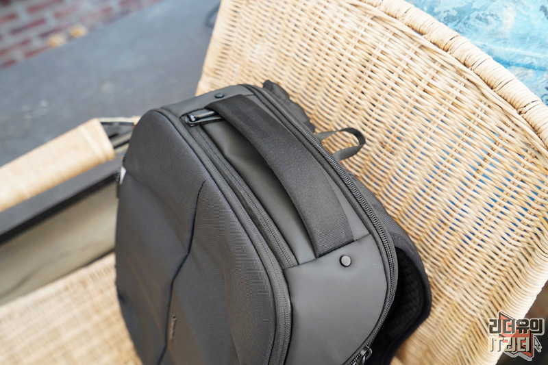 위에는 큼지막한 손잡이가 있습니다. 그리고 앞쪽으로 지퍼 라인이 있습니다.