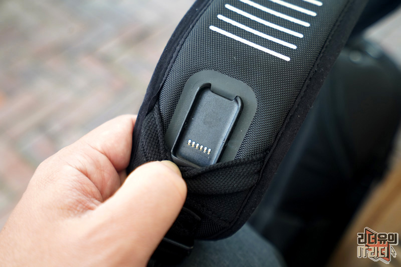 어깨 밴드에 있는 장착부에 센서를 맞춰서 장착하면 됩니다.