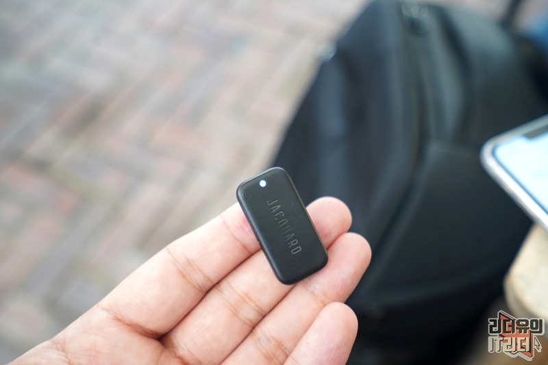 자카드™ by 구글 태그는 슬림하고 작은 사이즈로 되어 있습니다.