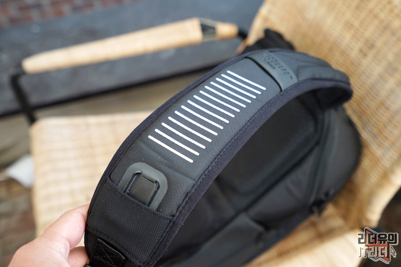 등판 부분은 메쉬망 디자인으로 되어 있어 송풍이 잘 되고 도톰한 패드가 들어가 있어 노트북을 잘 보호하고 있습니다.