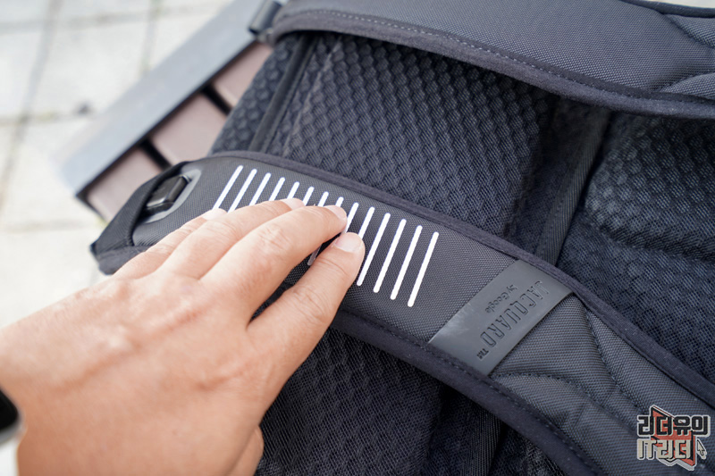어깨 패드도 안쪽엔 메쉬망 디자인으로 되어 있어 송풍이 잘 될 수 있도록 했습니다.